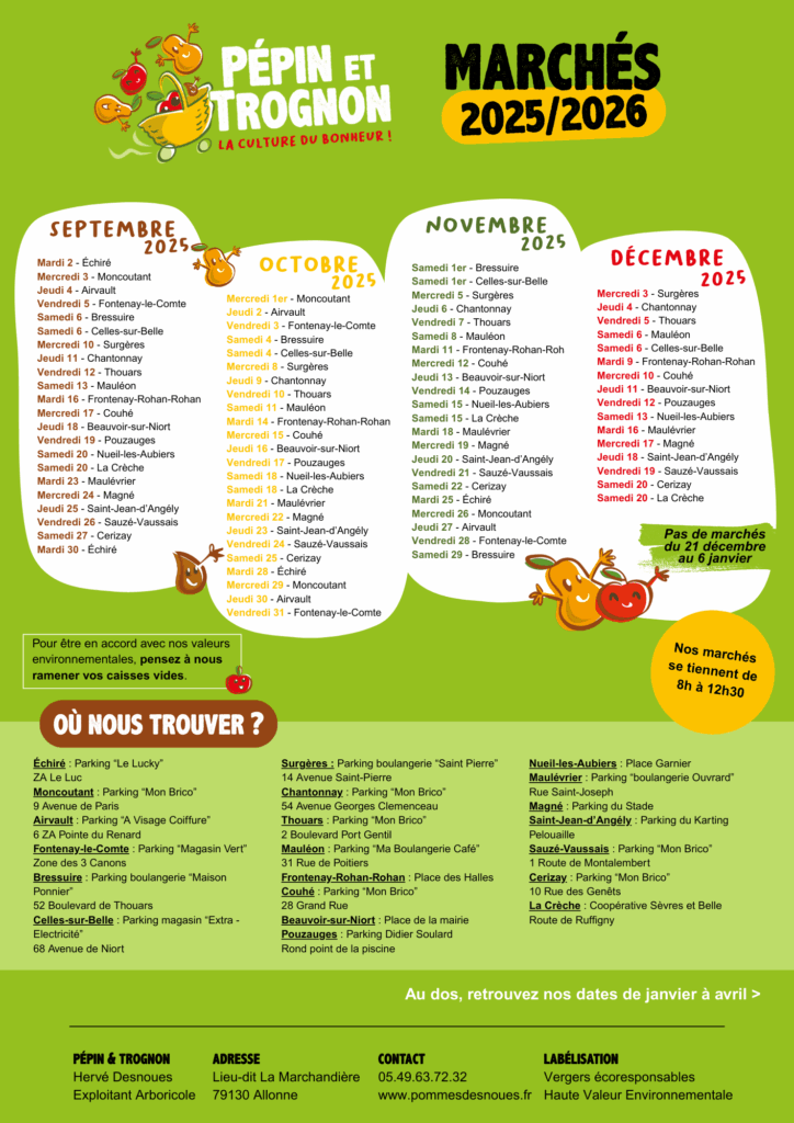Retrouvez nous du 2 septembre 2025 au 25 avril 2026 sur nos différents emplacements.